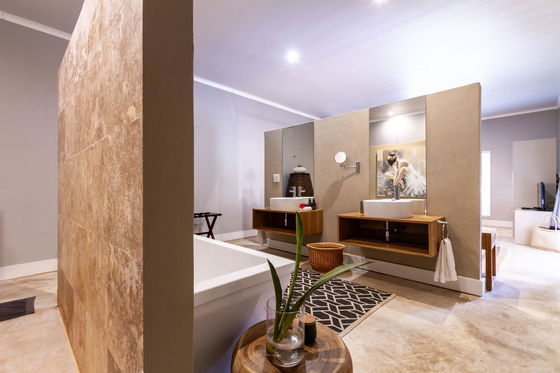 These rooms feature a king size extra-length bed, a bathroom with both a shower and bath, and air-conditioning. The lounge area includes a fireplace, while in-room amenities include a minibar, Nespresso machine, safe, DSTV, and free Wi-Fi.